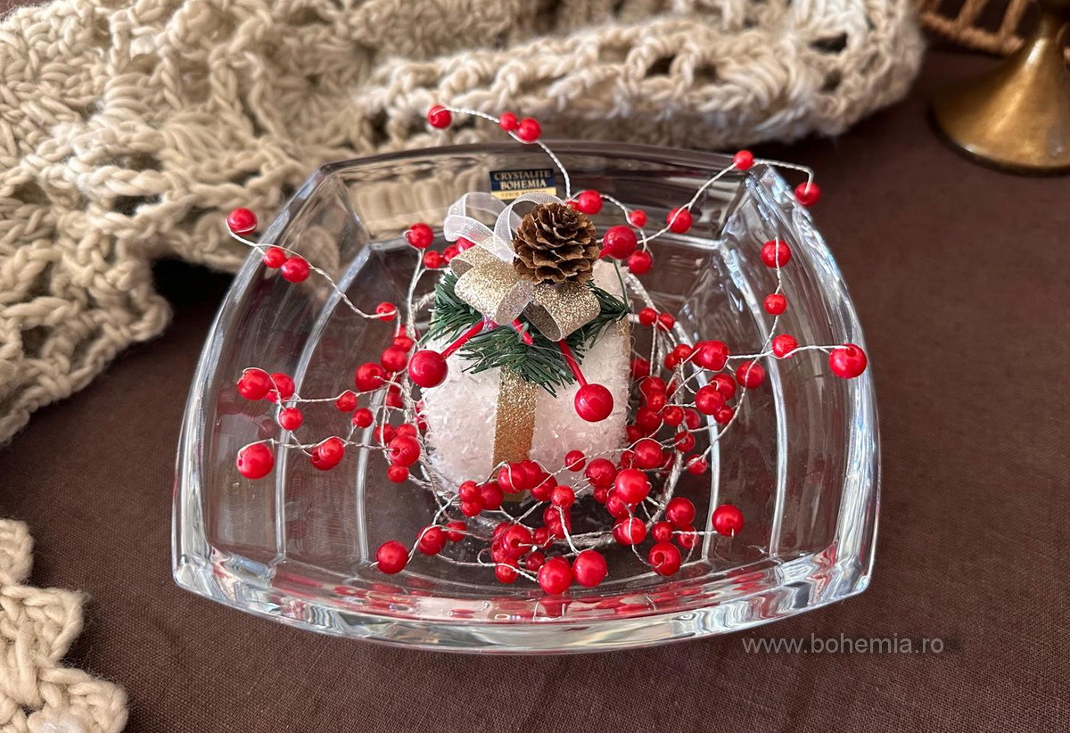 Bol patrat modern Segment, cu diametrul 20 cm cu decoratiuni incluse - Magia sarbatorilor de iarna in cristal de Bohemia