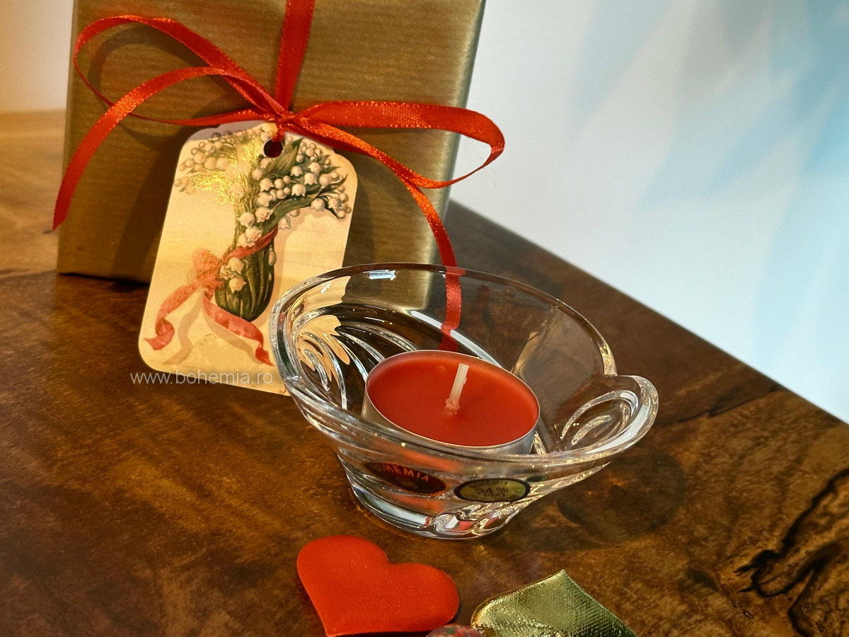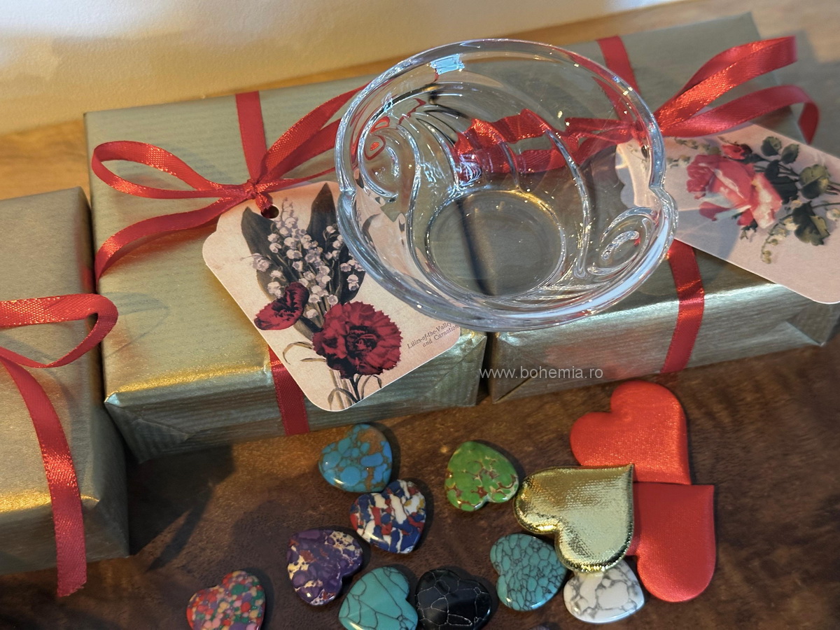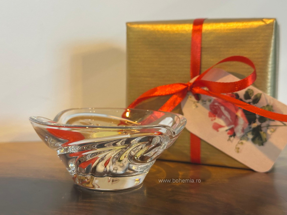 Un bol micut din cristal de Bohemia, cu diametrul de 9 cm, ales pentru delicatetea lui si pentru felul in care prinde lumina chiar si in cele mai simple gesturi.