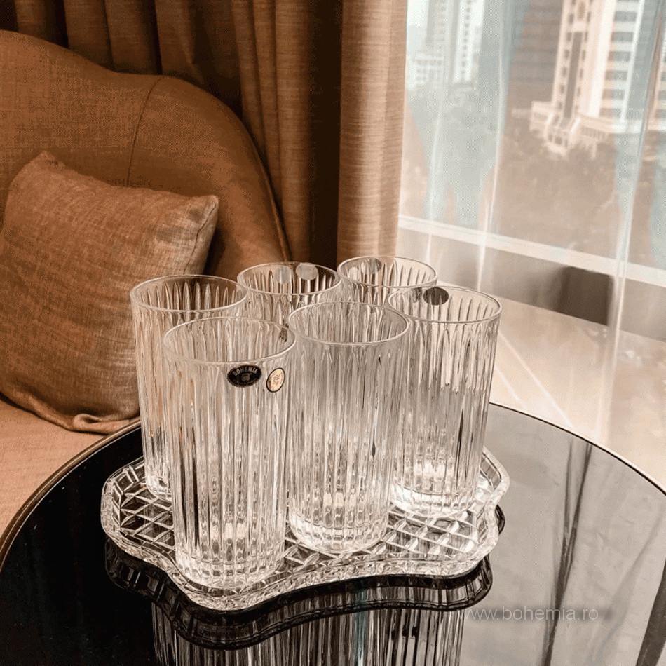 Set 6 pahare din cristal de Bohemia, pentru suc, bere sau longdrink-urile Dumneavoastra favorite.
