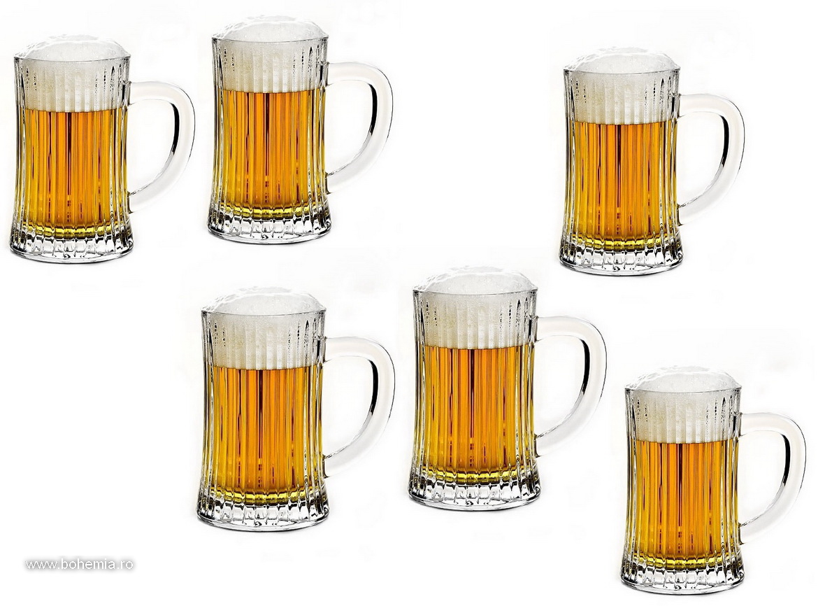 Set 6 halbe din cristal de Bohemia, model modern, cu capacitatea de 500 ml.