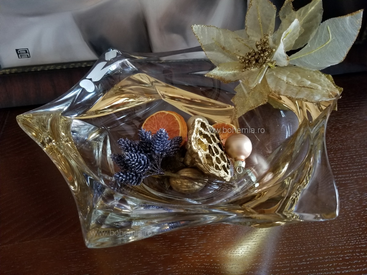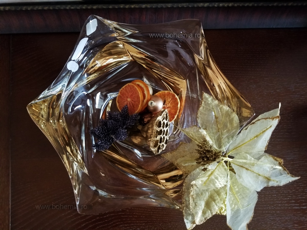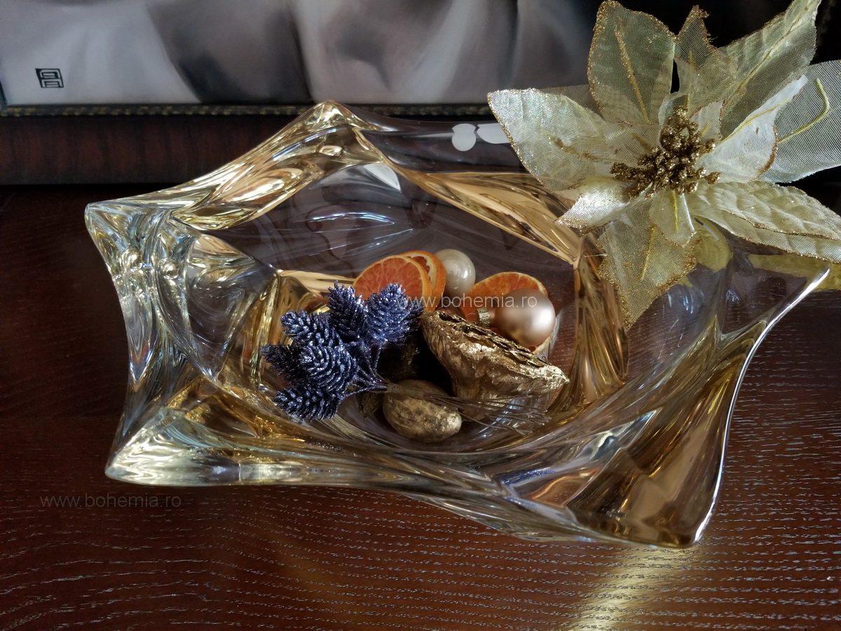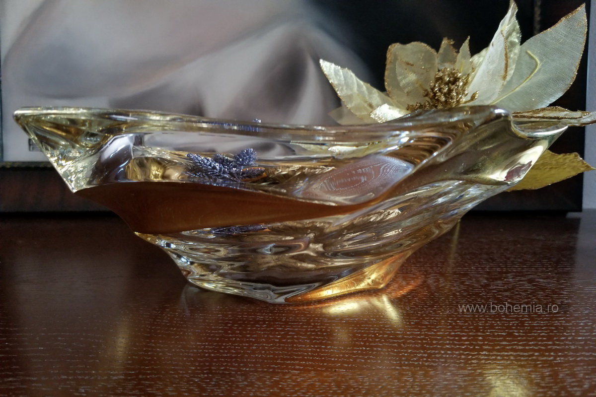 Fructiera cu unduiri moderne, incapatoare, cu decor nobil si ambalaj deosebit, produsa de compania Bohemia Treasury.