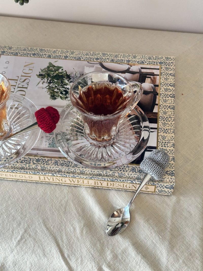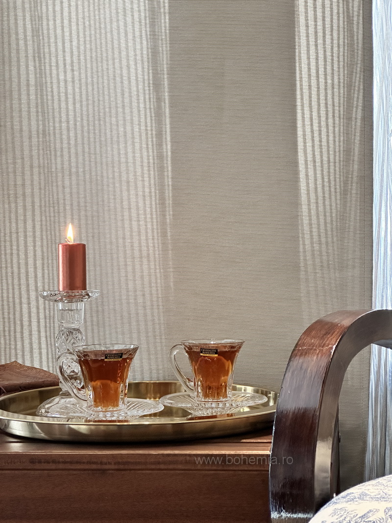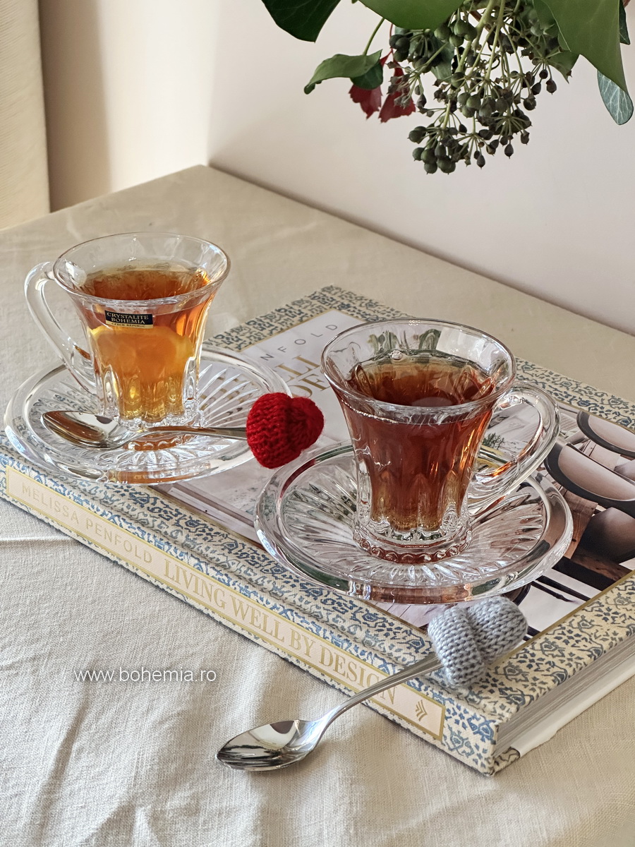 Set modern de cafea sau ceai, ce contine 6 cescute cu capacitatea de 120 ml si 6 farfuriute, cu un design plin de farmec.