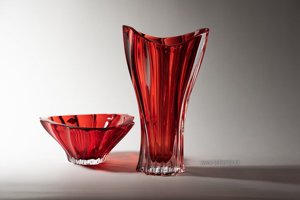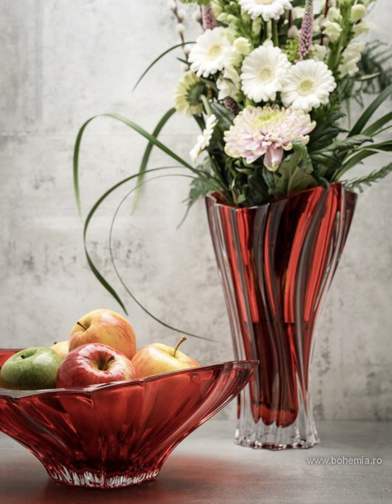 SET FRUCTIERA 22cm SI VAZA 32cm BOHEMIA- VENUS PLANTICA ROSU