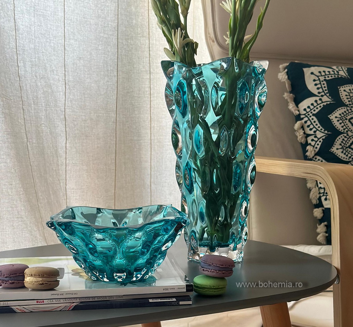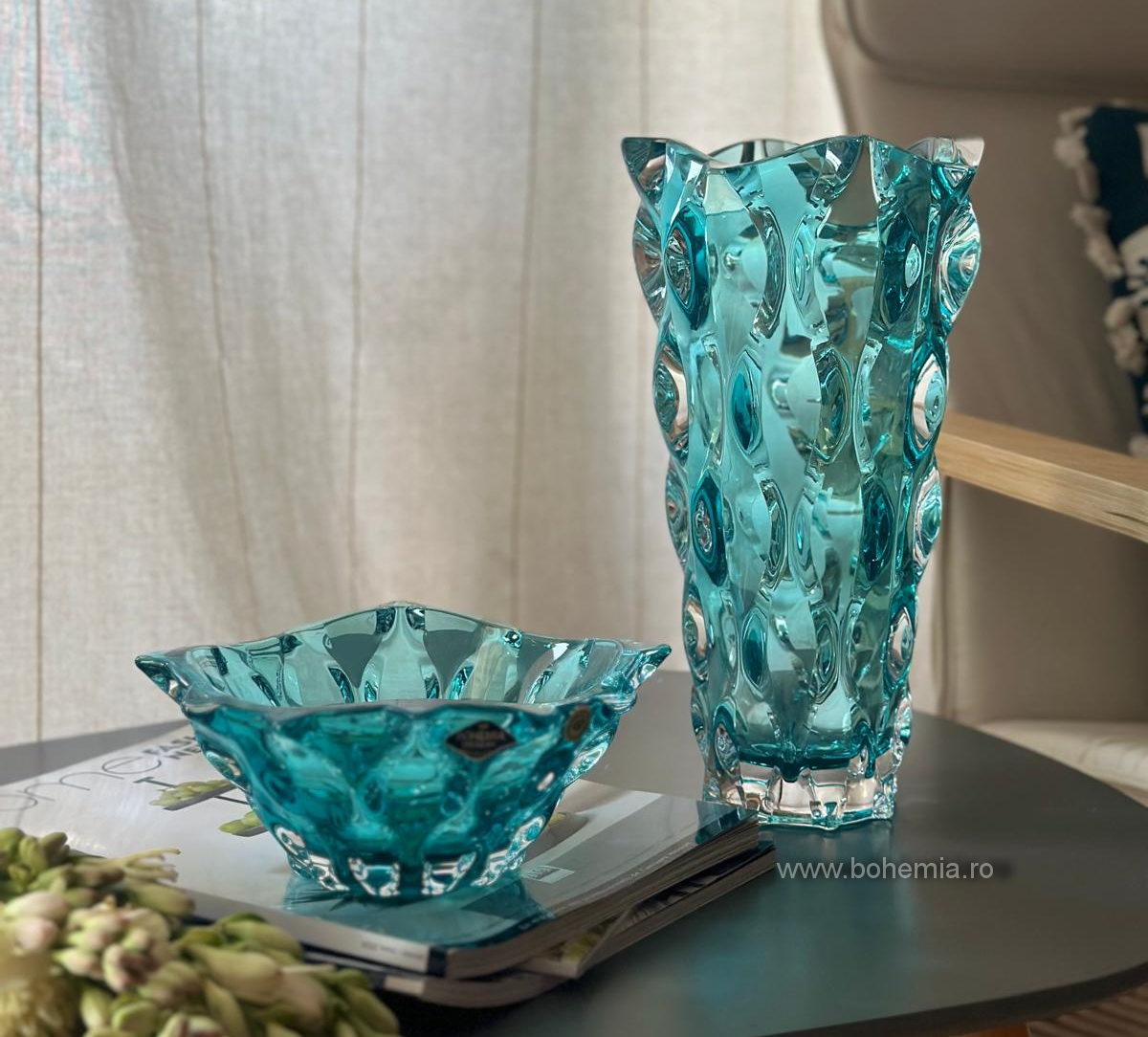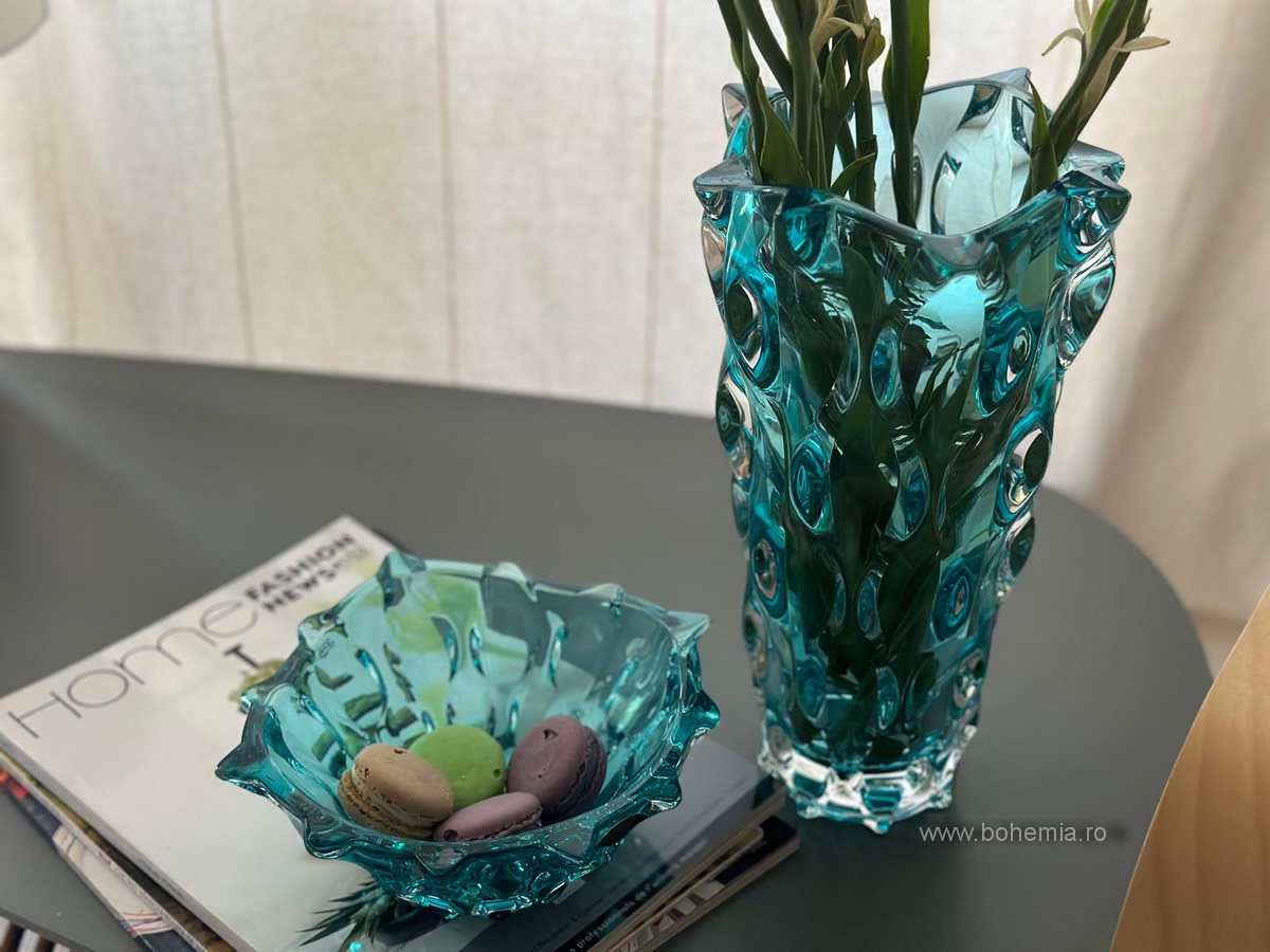 Bol mediu si vaza avand o culoare moderna, ce accentueaza decorul spumos cu nume de dans- Samba, dar si cu ambalaj deosebit, produse de compania Bohemia Treasury.