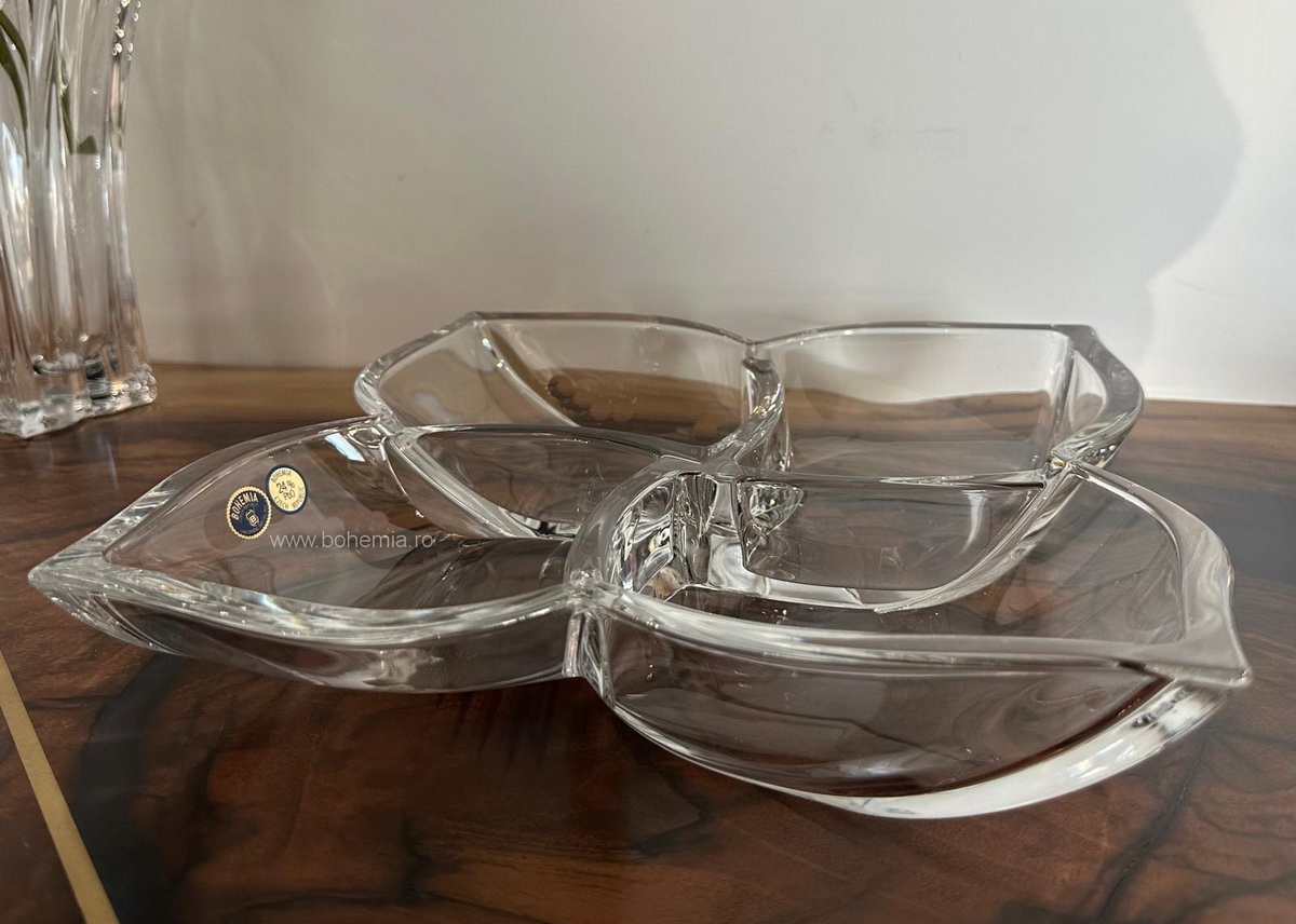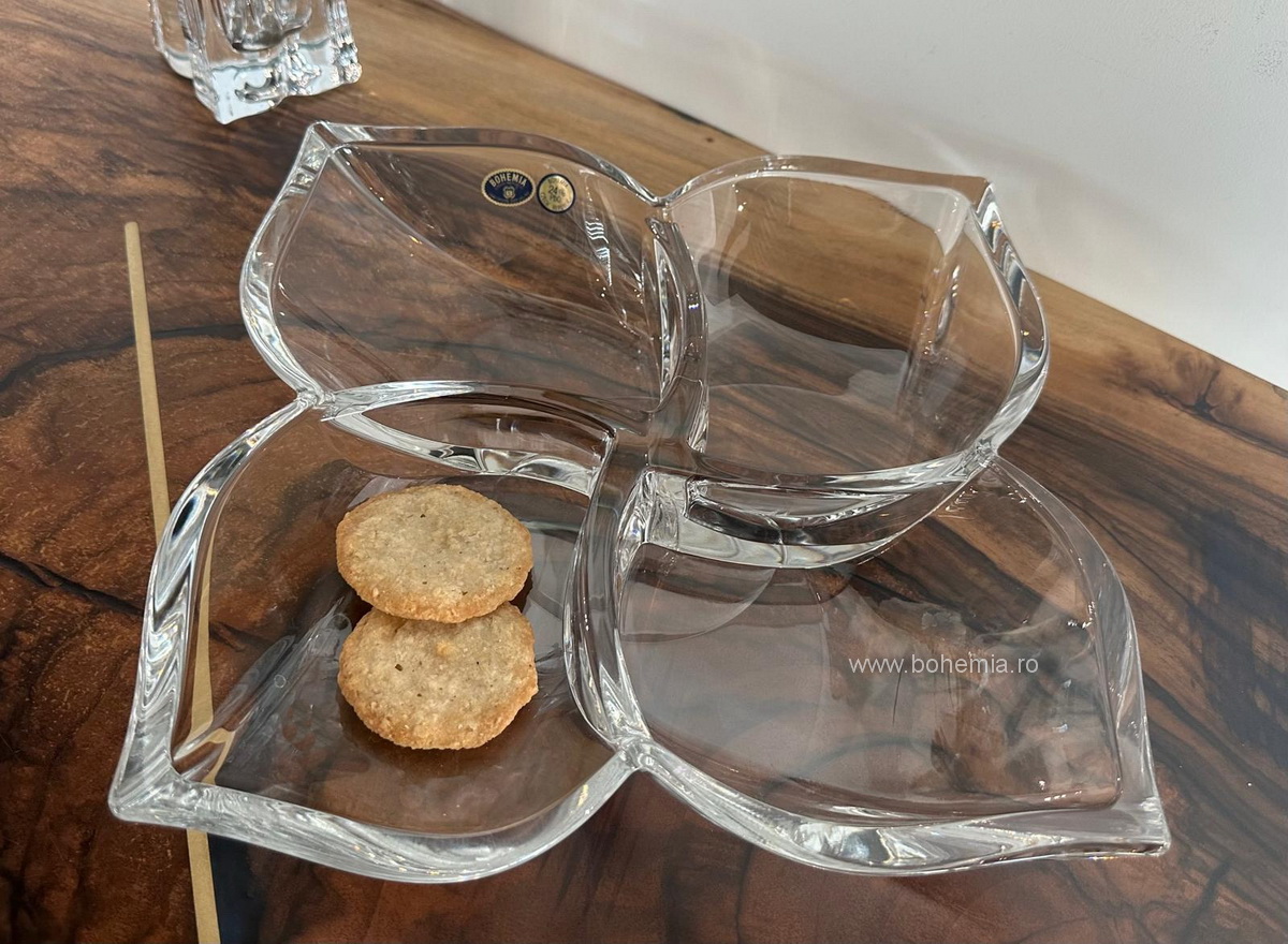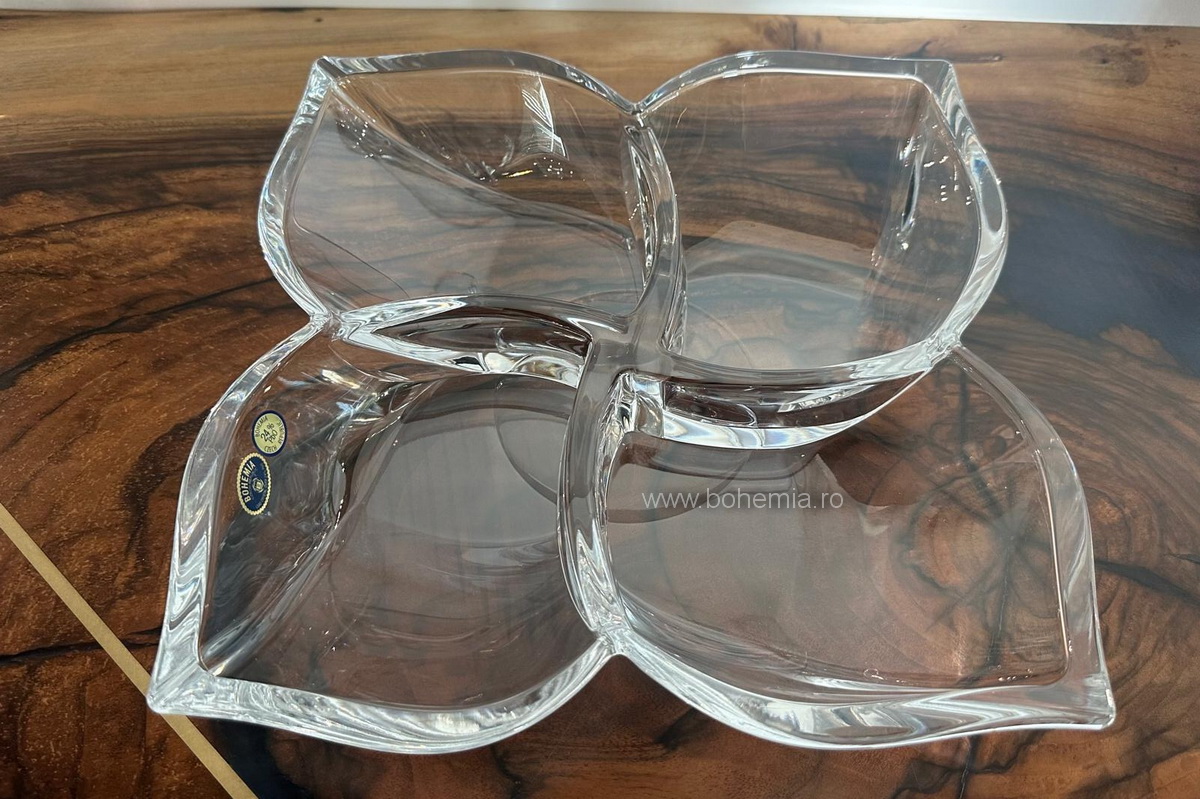 Interiorul este compartimentat în 4 secțiuni perfect conturate, ideale pentru servirea aperitivelor, bomboanelor, fructelor sau deserturilor, oferind un aspect organizat și elegant mesei tale.