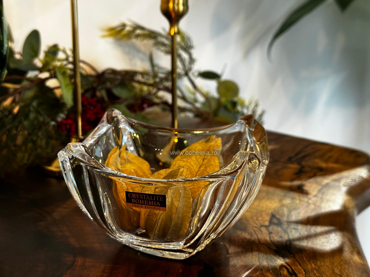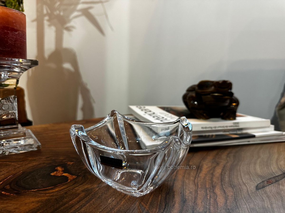 Cu un diametru de 13 cm, o inaltime de 6 cm si o forma patrata cu latura de 11 cm, acest bol adauga eleganta oricarui decor.