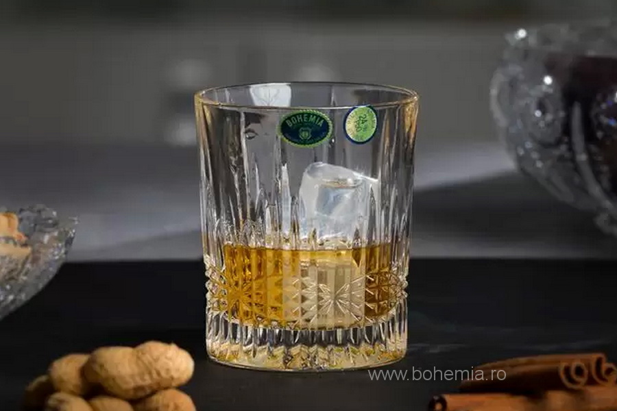 Paharele sunt fabricate din Cristal de Bohemia autentic, avand 24%PbO.