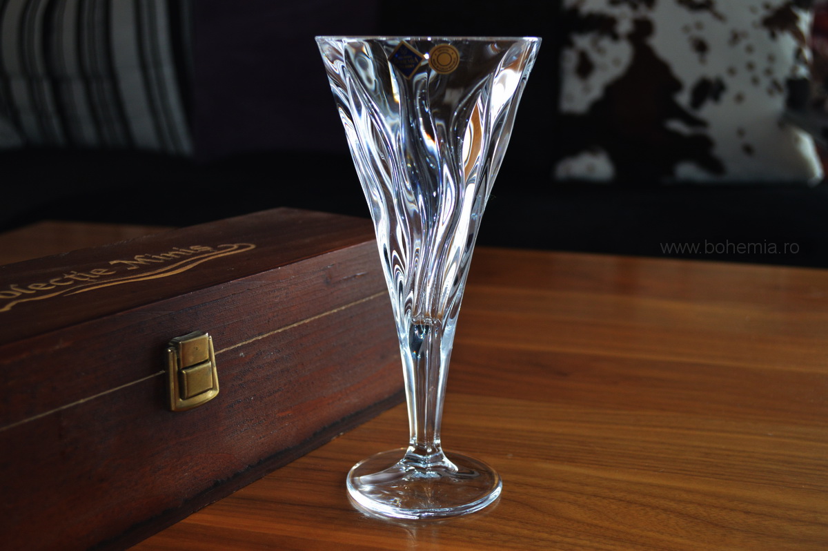 Pahare de vin sau sampanie cu design modern, rafinat, cu valuiri subtile pe intreaga suprafata.