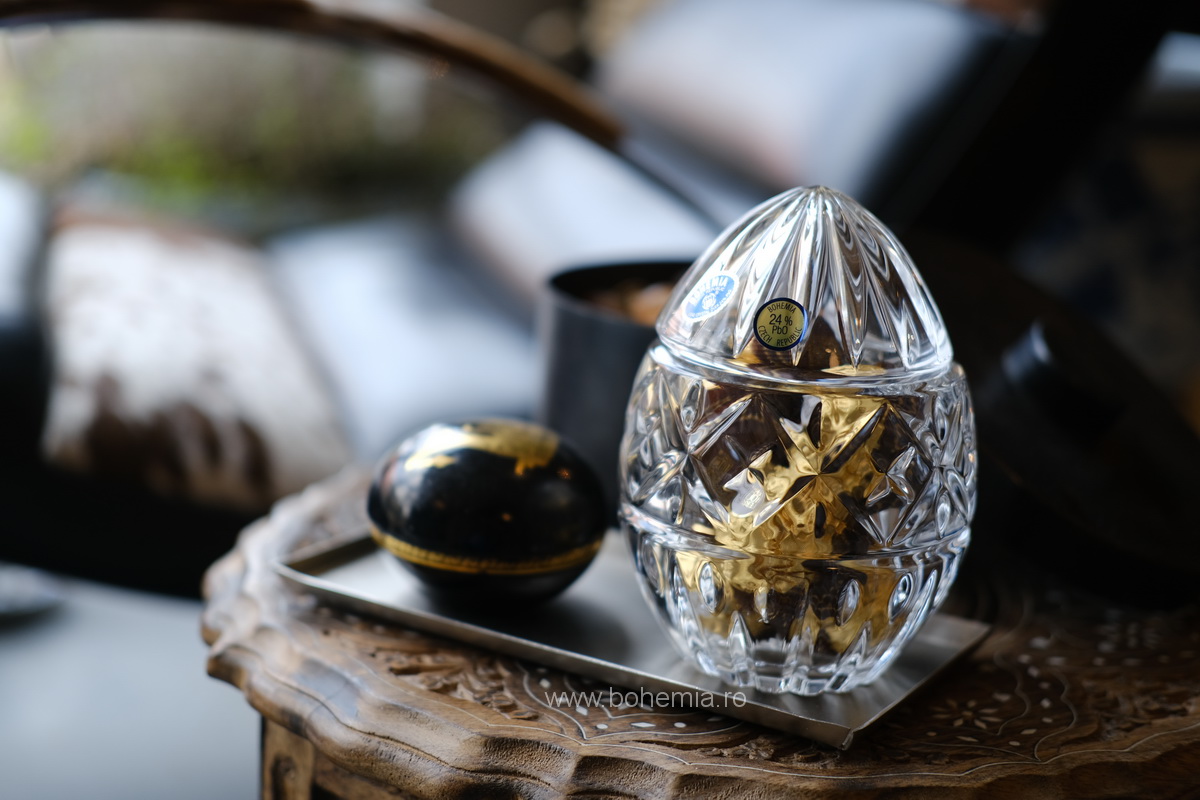 Realizata din cristal de Bohemia, aceasta piesa imbina traditia cu rafinamentul si devine nu doar un obiect decorativ, ci o mica vedeta a mesei de Paste.