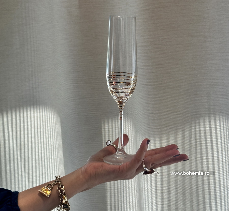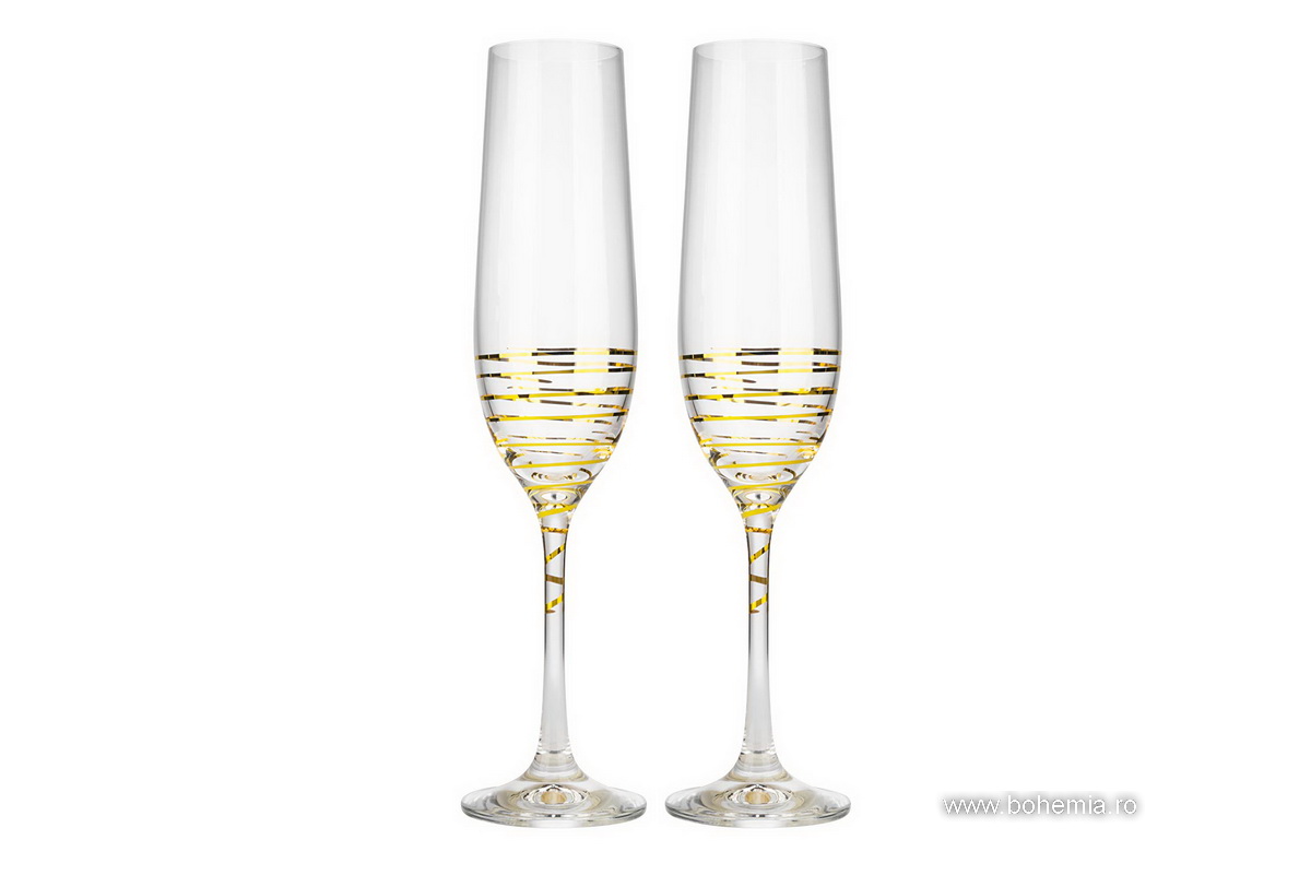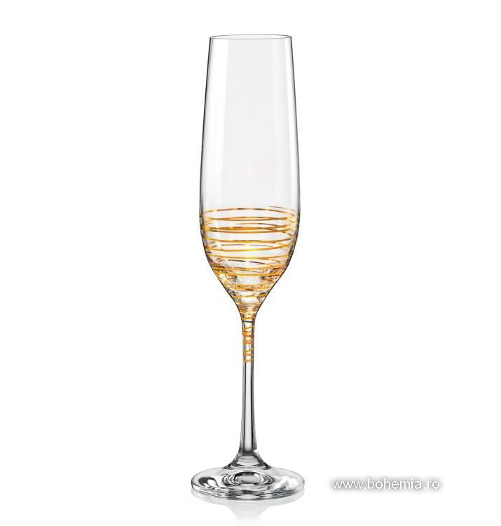 SET 6 PAHARE SAMPANIE BOHEMIA CRISTALIN -SPIRAL GOLD