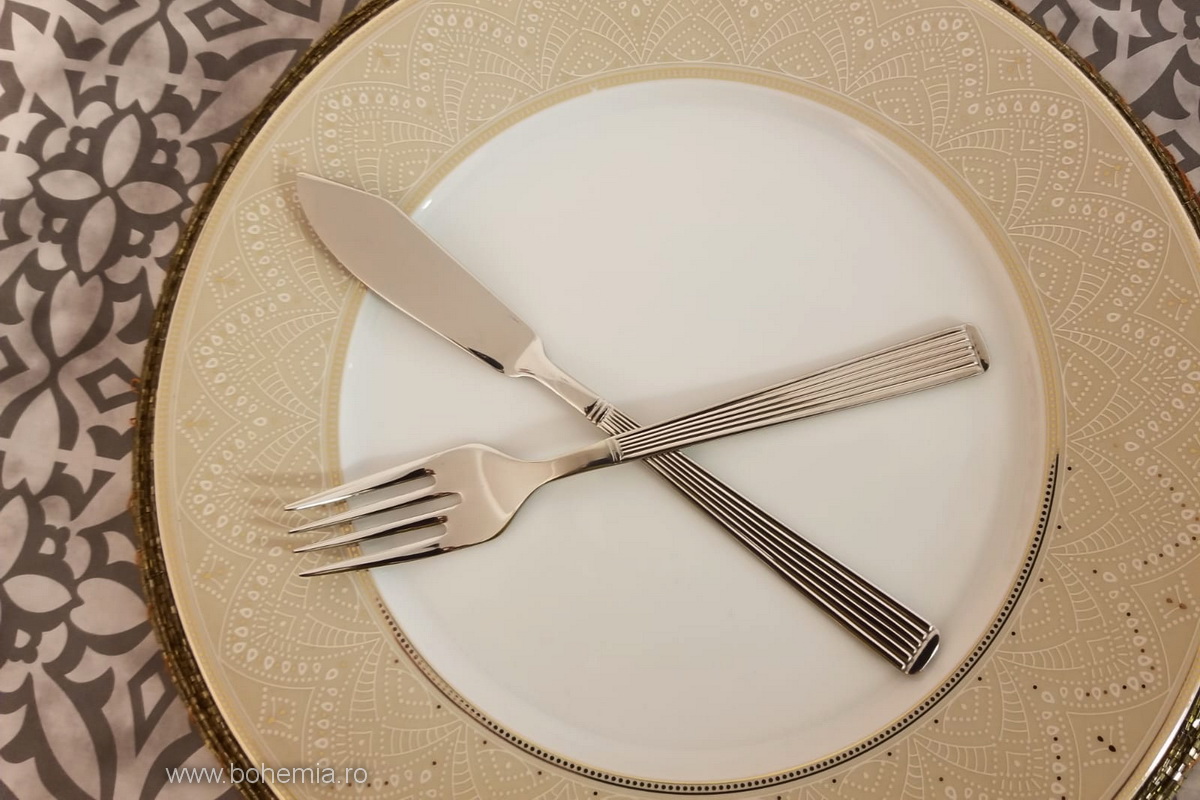 Setul pentru peste contine: 6 furculite si 6 cutite cu design special.