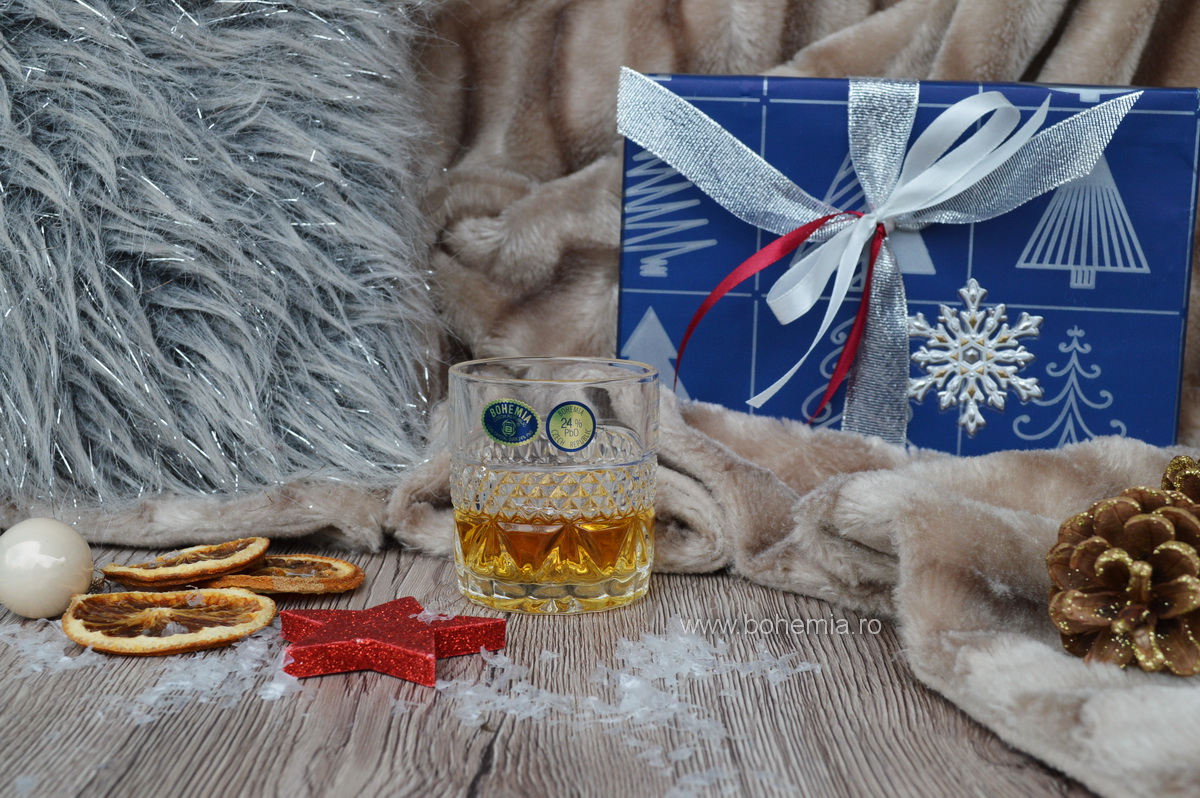 PACHET de sarbatori continand 15 seturi de pahare de whisky, tarie - tuica, visinata, ambalate de cadou, gata de a fi oferite colaboratorilor, angajatilor sau apropiatilor dvs. in perioada sarbatorilor de iarna.