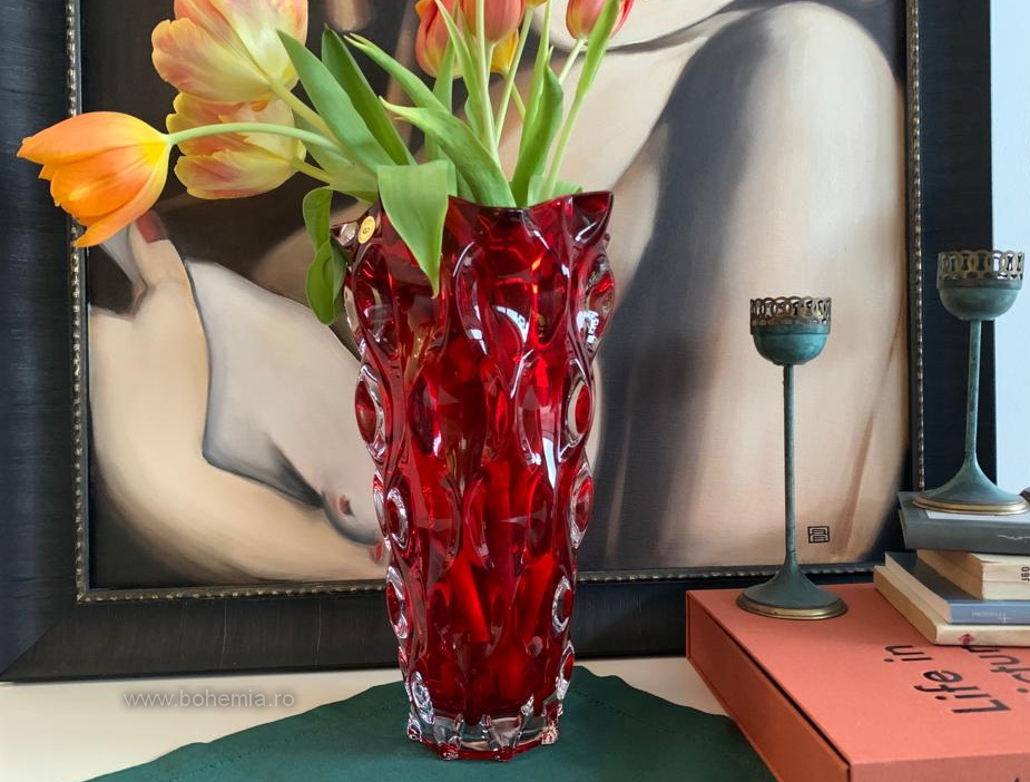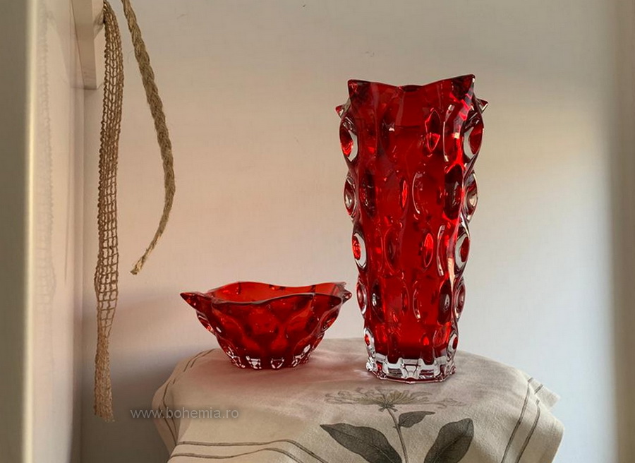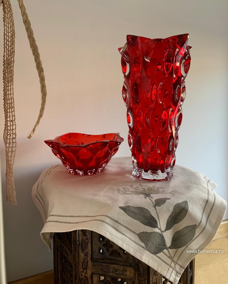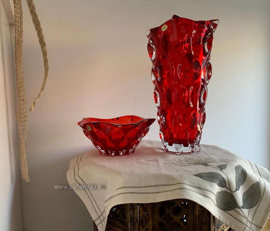 SET FRUCTIERA 21 cm SI VAZA BOHEMIA CRISTALIN - SAMBA ROSU
