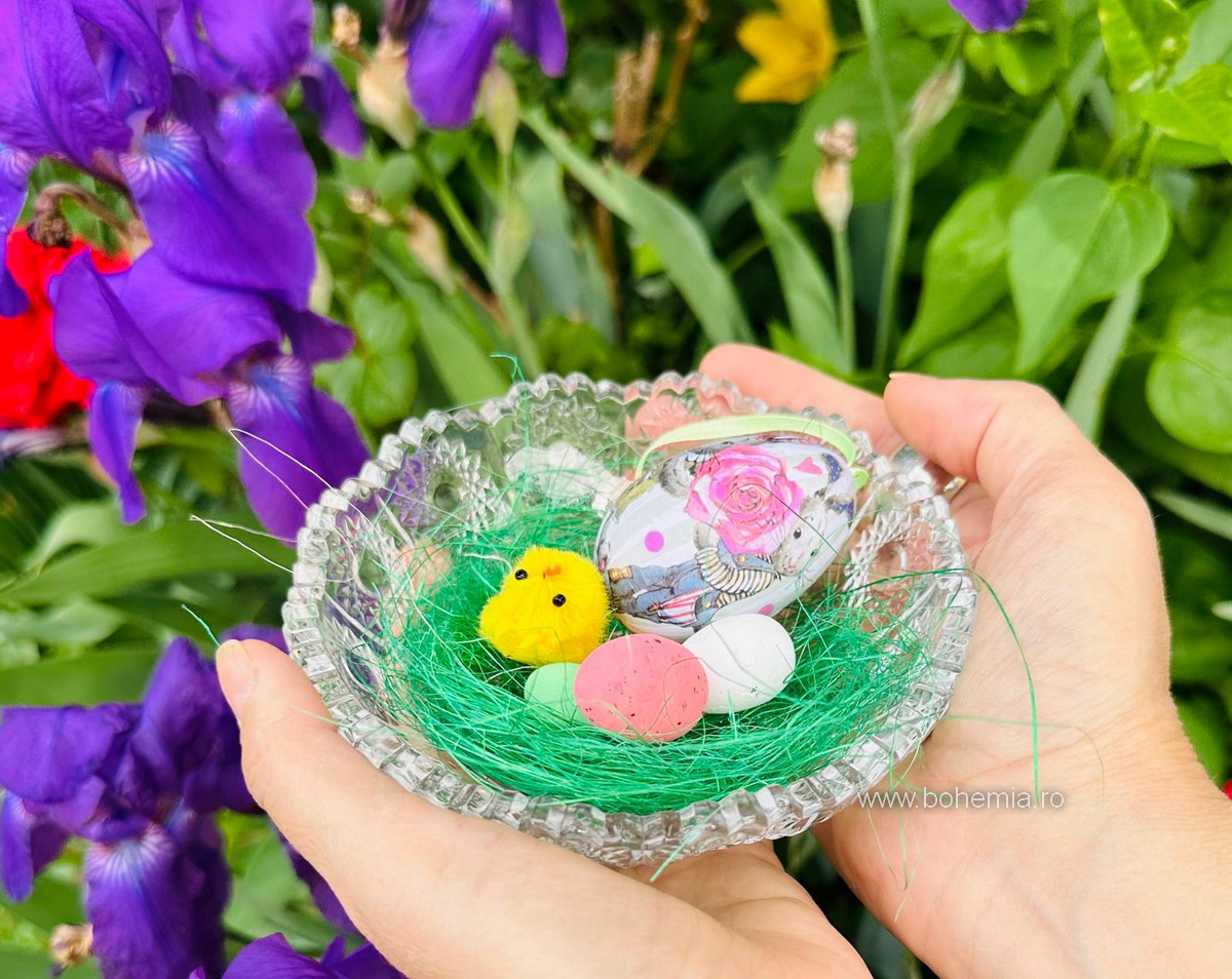 Transformă-ți masa de Paște într-un festival de culori cu acest bol din cristal Bohemia, decorat cu ouă vesele și viu colorate.