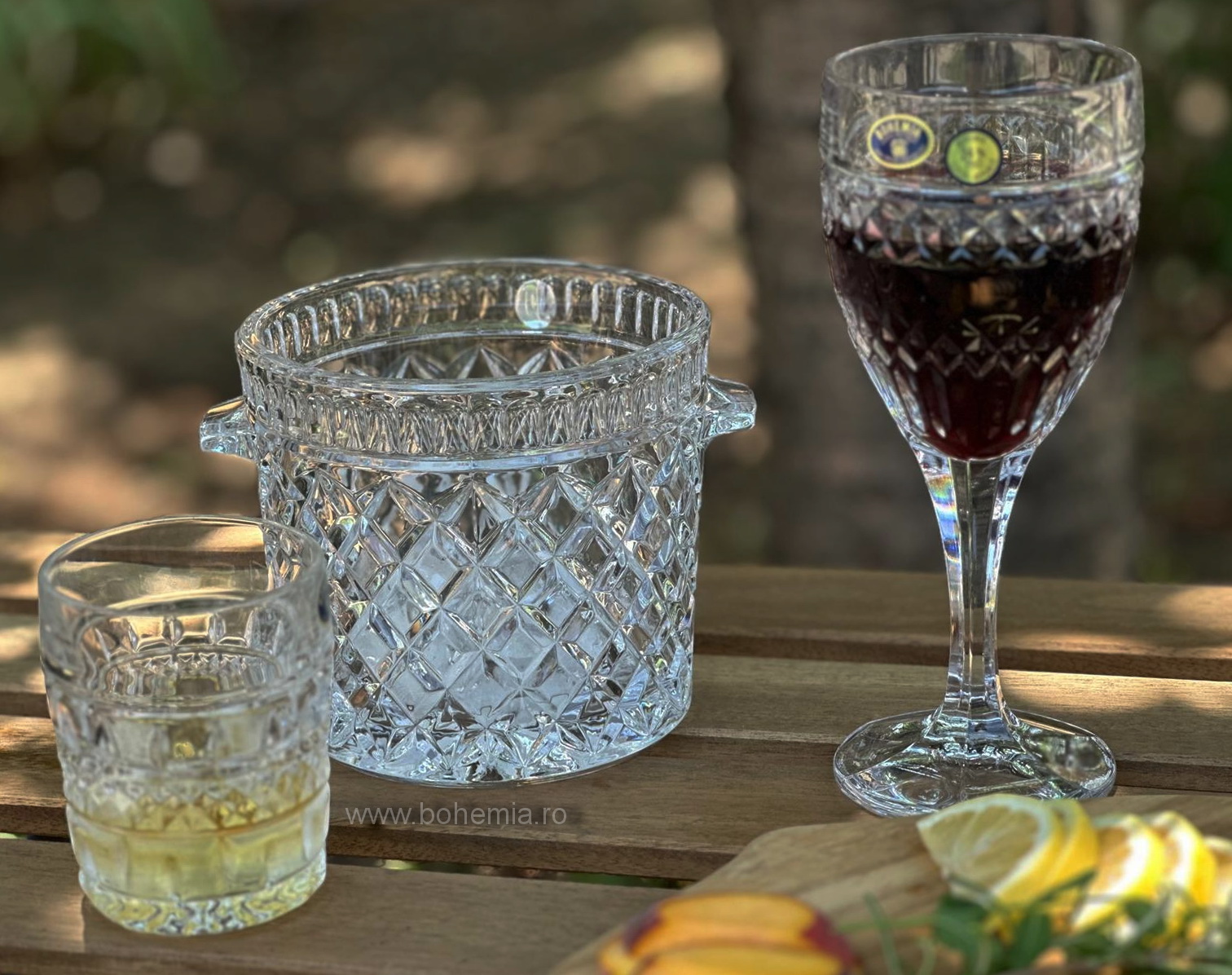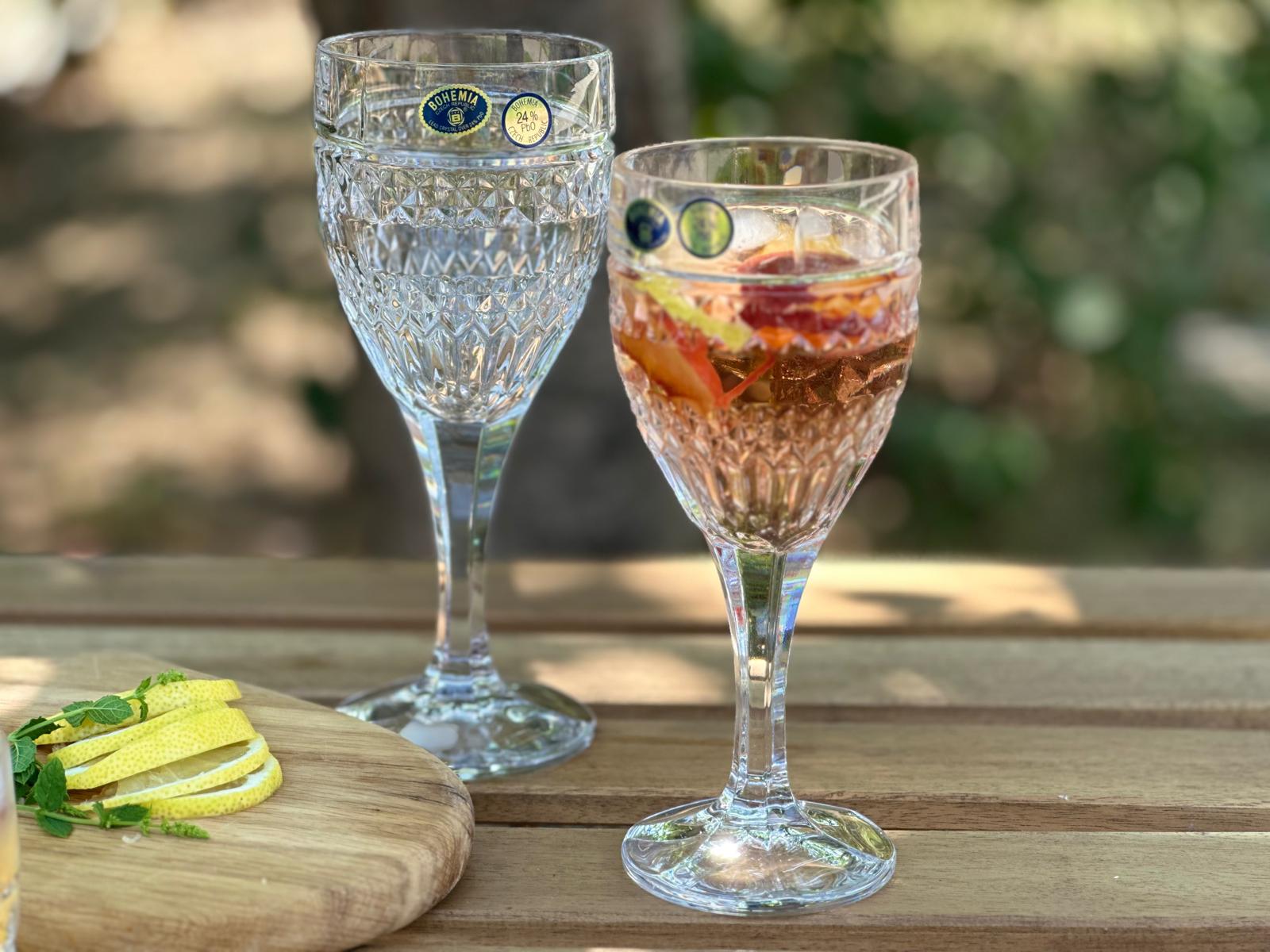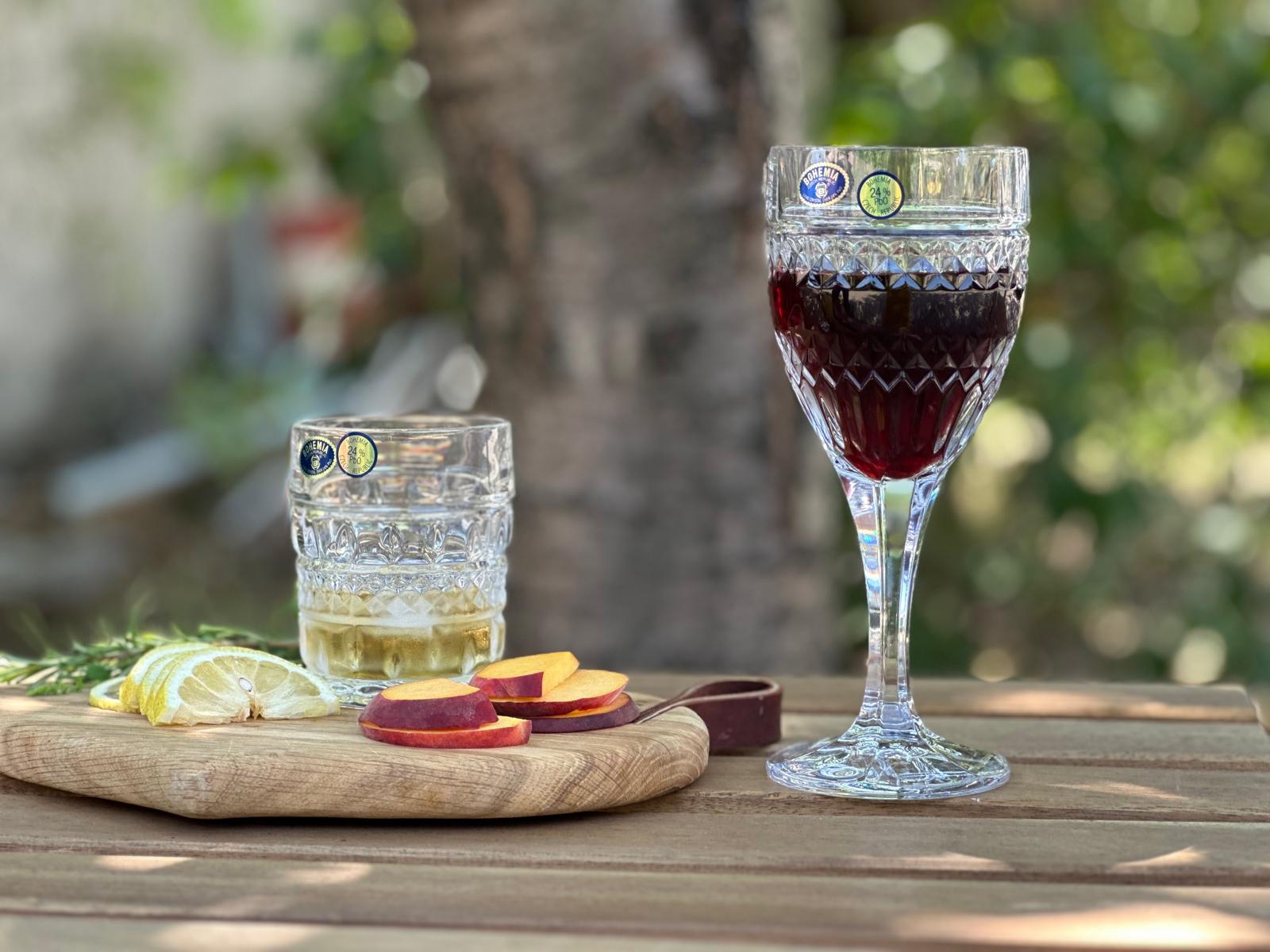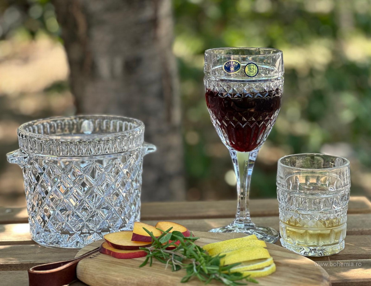 Set format din 6 pahare de whisky si 6 pahare de vin, ambele avand 240 ml, din cristal de Bohemia cu 24%PbO.