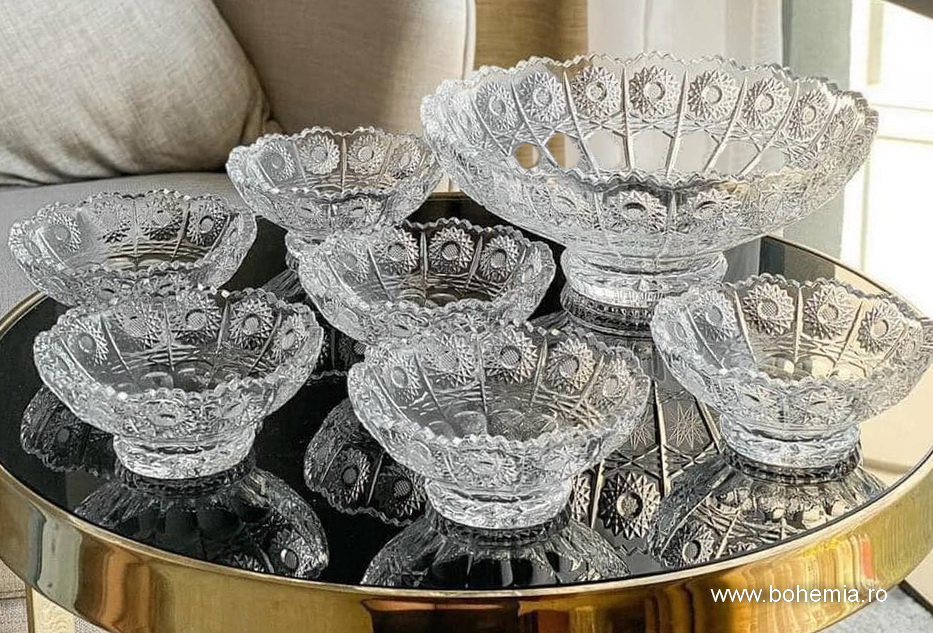 Cristal de Bohemia autentic, avand 24%PbO, setul contine 7 piese.