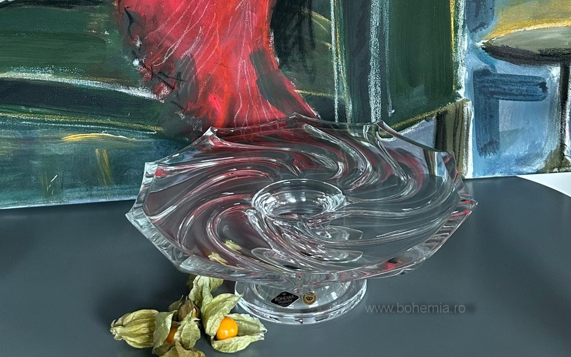 Realizat din cristalin Bohemia, capteaza lumina si o transforma in reflexii delicate, punand in valoare fiecare preparat servit.