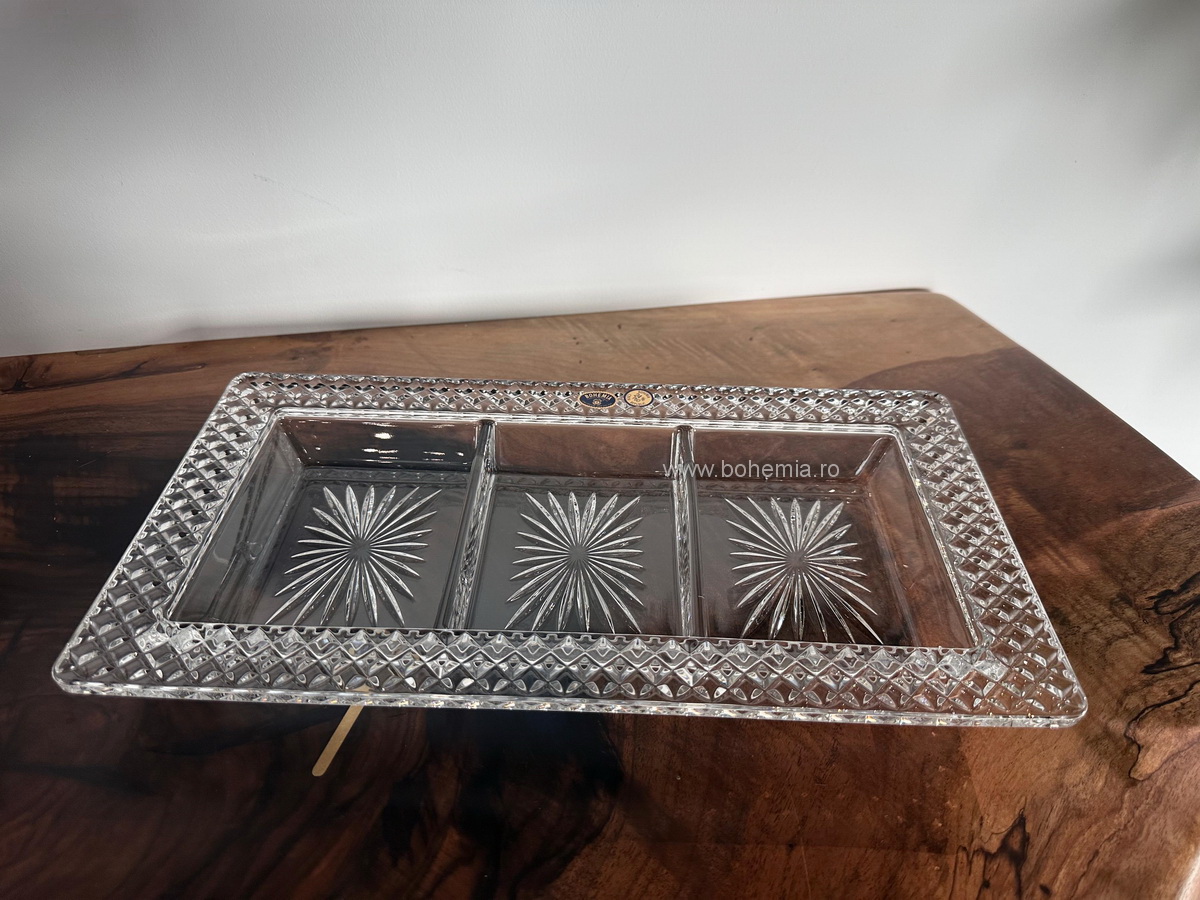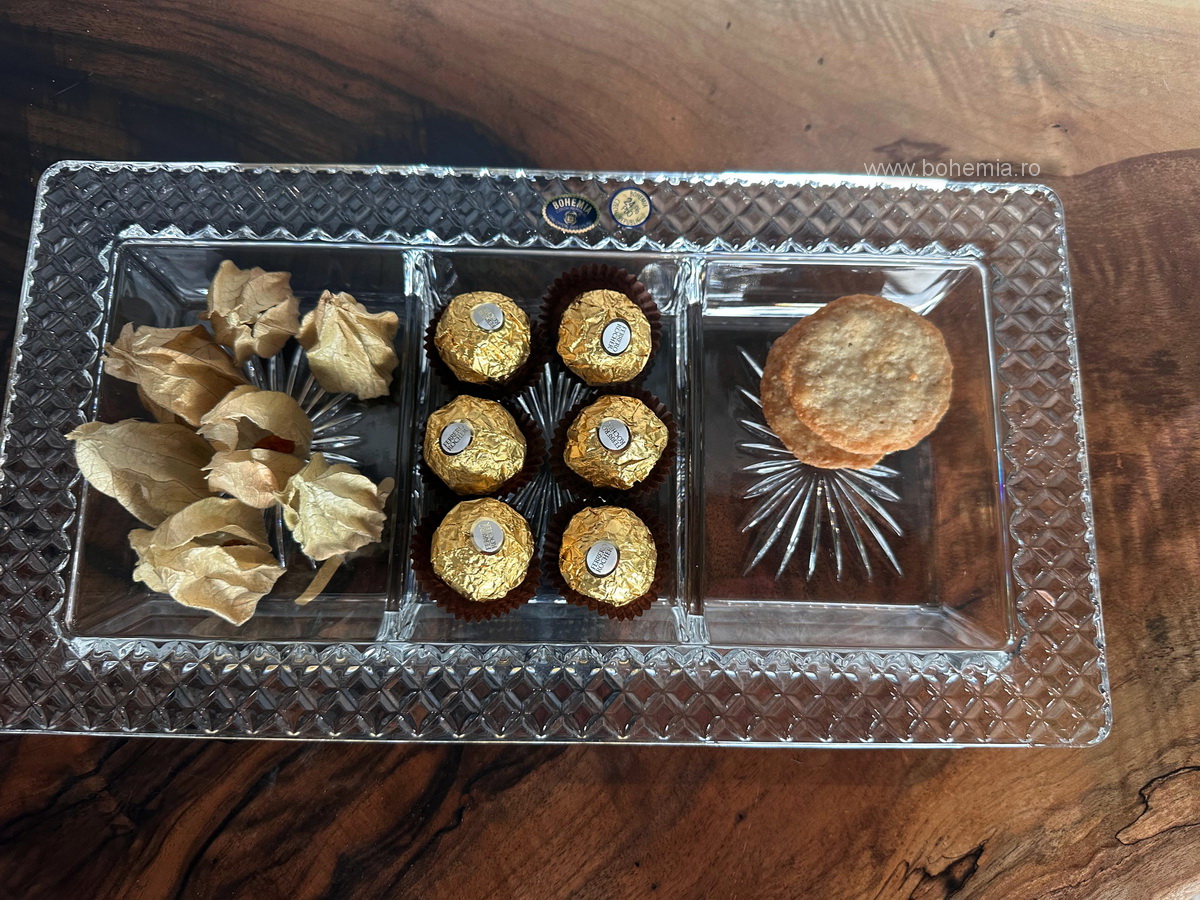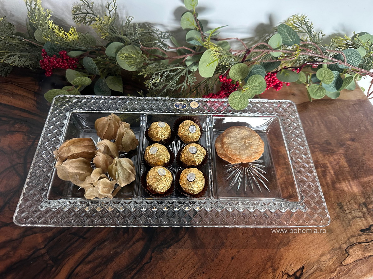 Acest platou dreptunghiular din cristal de Bohemia imbina armonios functionalitatea cu eleganta moderna.