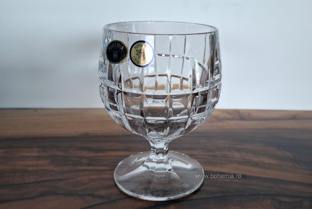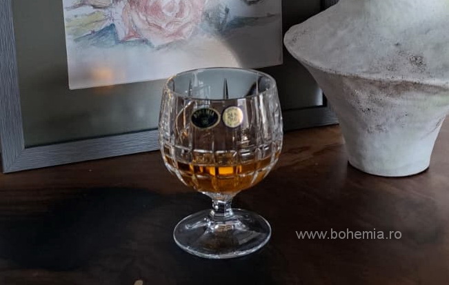 Paharele coniac Dover impresioneaza prin designul lor modern si rafinat, completat de un decor subtil cu patrate, care confera fiecarui pahar un aspect elegant si sofisticat. Forma lor ergonomica evidentiaza aroma si culoarea bauturii, transformand fiecare degustare intr-o experienta desavarsita.