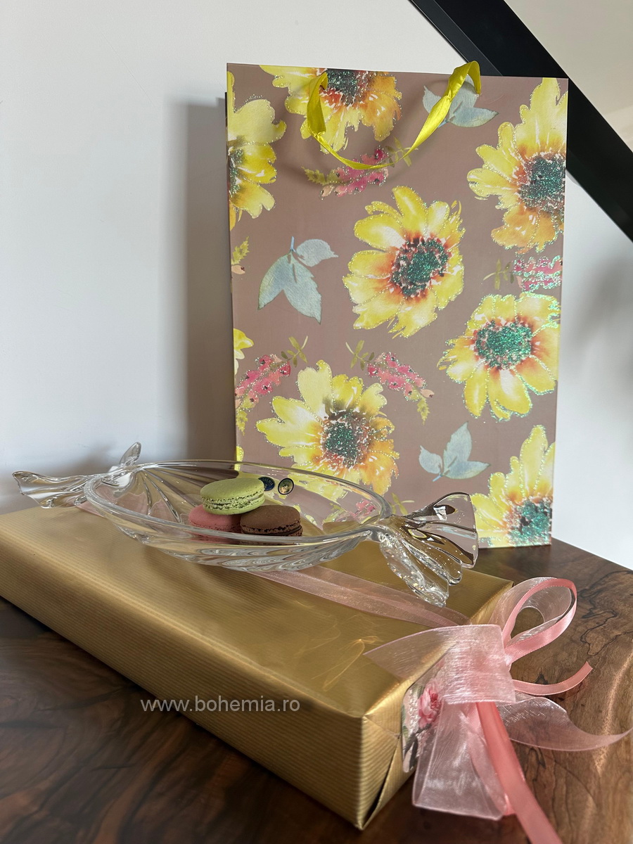Este perfect pentru a aseza dulciuri, fructe sau mici delicii, aducand culoare si buna dispozitie pe masa. Va inveseli cu siguranta onomastica celui care il va primi si va deveni rapid un detaliu indragit.