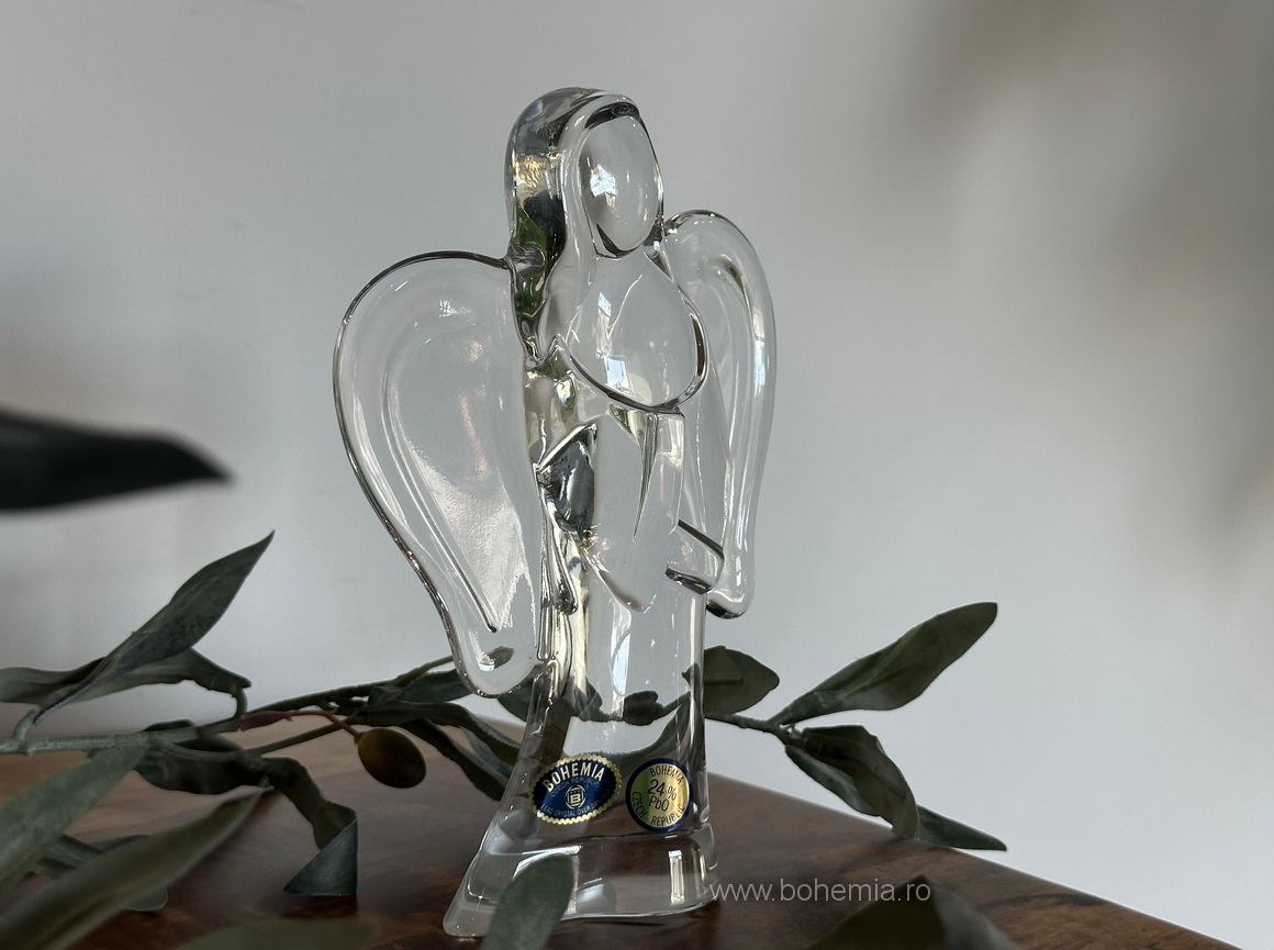 Figurina eleganta, sub forma de inger cu aripi, realizata din cristal de Bohemia, se remarca printr-o prezenta clara si echilibrata.