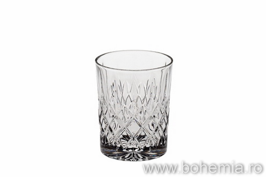 Trăsăturile paharelor de whisky din colecţia Angela au un farmec nesfarşit prin claritatea cristalului şi greutatea substanţială.